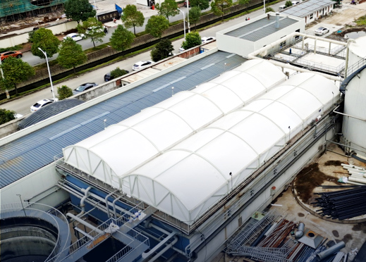降低運營成本:雙膜密封罩可防止工業水曝氣池加蓋后,夏季水溫升高,危及微生物生存環境;亦可用于市政污水冬季保溫,降低水處理費用。
